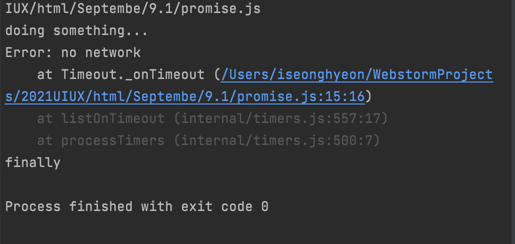 모든 상황에 .finally 가 실행됨을 확인할 수 있습니다.